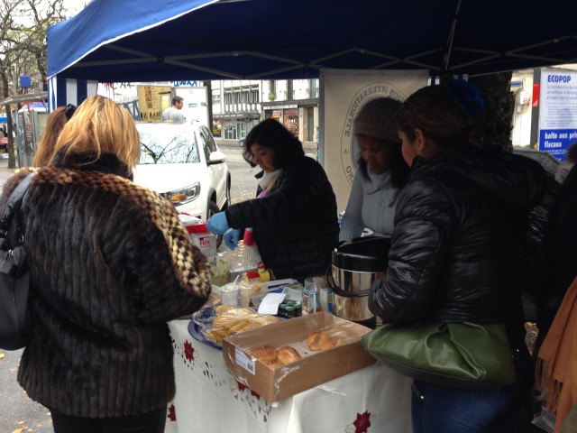 Llevando en alto la bandera de la solidaridad liderada por la Dra. María Luisa Piraquive en todo el mundo, en la Plaine de Plainpalais uno de los mercados mas conocidos de la Ciudad de Ginebra – Suiza, nuestro equipo de voluntarios realizaron una particular actividad en la que a través de la entrega de artículos elaborados en el taller de manualidades y muestras de gastronomía internacional, recibían a cambio un donativo, resaltando de esta manera la importancia de ayudar a los demás.