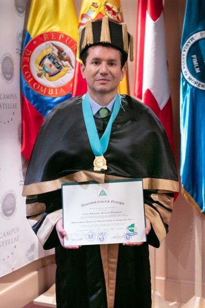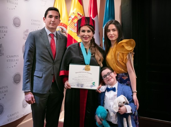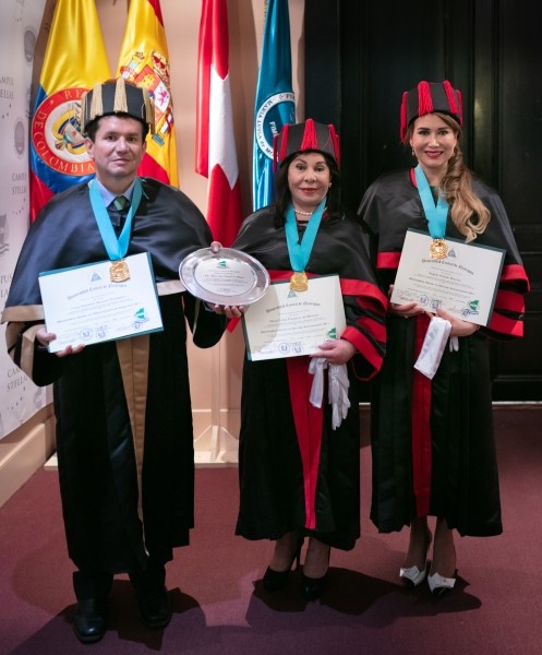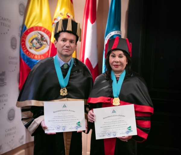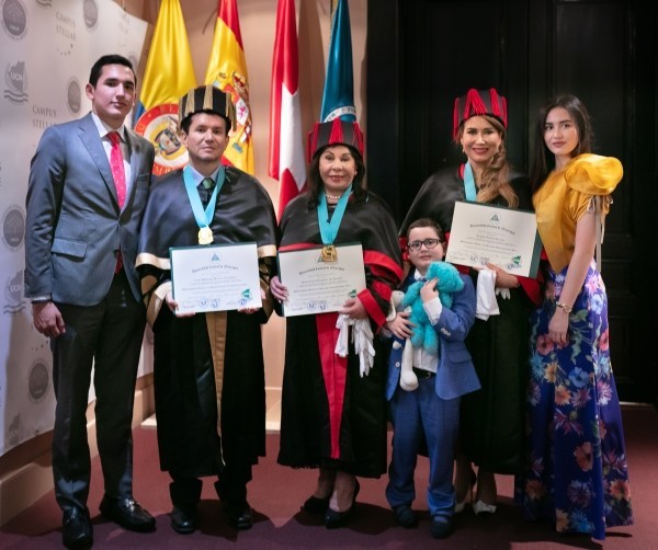 Igualmente, recibieron su título de doctorado académico, el Dr. César Eduardo Moreno, miembro del Consejo de Fundadores de la Fundación Internacional María Luisa de Moreno, Ph. D. en Administración de Empresas; y la Dra. Ángela Oviedo Rincón, vicepresidenta mundial de la Fundación, Ph. D. en Derecho Internacional.