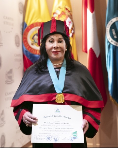 En el Theatre Les Salons Foundation, en Ginebra, Suiza, se realizó el solemne acto de graduación de la Dra. María Luisa Piraquive, fundadora y presidenta de la Fundación Internacional María Luisa de Moreno, en el que recibió su título académico de doctorado Ph. D. en Derecho Internacional por parte de la Universidad Central de Nicaragua (UCN) con decanato en Austria, una institución miembro de la Asociación Internacional de Universidades y que desarrolla sus programas de doctorado con importantes universidades de Europa.