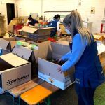 Debido a que la actual situación en Ucrania ha provocado un éxodo de los ciudadanos que se ven en la necesidad de salir de manera forzada y sin pertenencias, en un centro de recaudación al norte de Fráncfort del Meno se ha adecuado un espacio para reunir los donativos. En este lugar, nuestros voluntarios colaboran clasificando y organizando todos los artículos, en particular, la ropa para niños, mujeres y hombres.